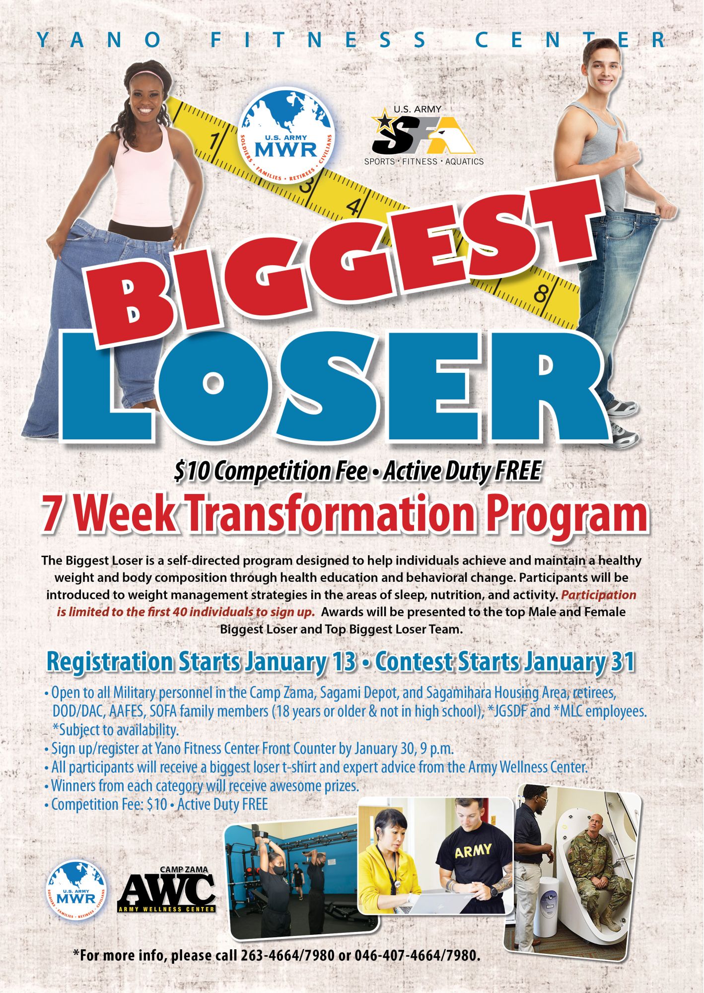 Are you ready for a new you? We invite you to start off 2022 with a health and fitness makeover: we have the fitness equipment at Yano Gym, and the know-how from professionals at the Camp Zama Army Wellness Center. Together, we can help you achieve your fitness goals!